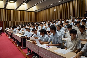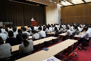 9月11日(水)のLHRの時間に、2年生は、記念ホールで進路講演会を行いました。講師に、京都産業大学文化学部副学部長 国際文化学科 近藤剛教授をお迎えして、「大学に進学する意味」や学部の話をしていただきました。京都産業大学に進学した先輩も来てくれました。単に大学に行くことが目的ではダメ。なぜ大学に行くのか。大学に行って何を学び、それを活かして何をしたいのか。そのためには、学部選びが重要です。今日のお話を活かして、自分の進路選択に臨んでください。
