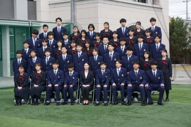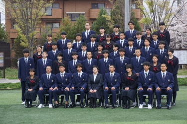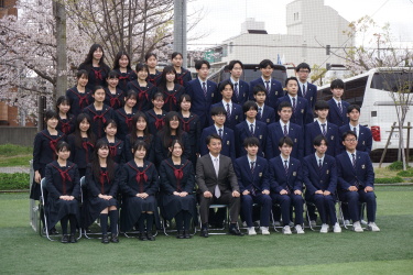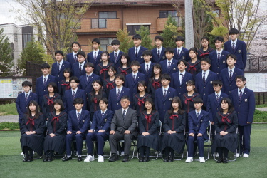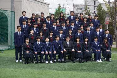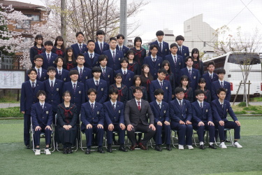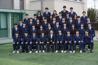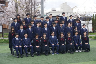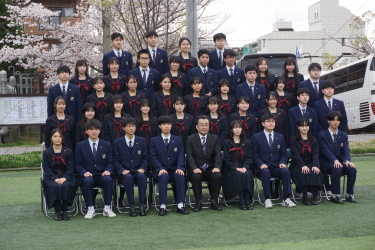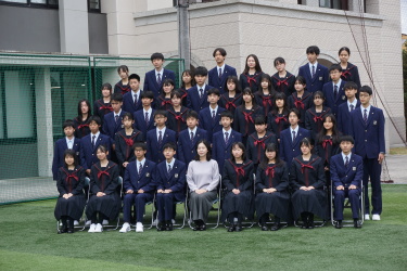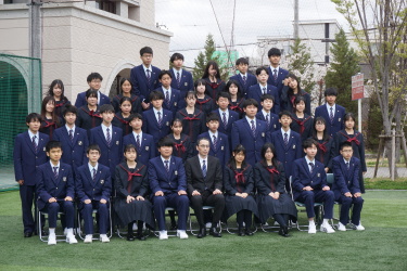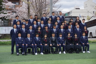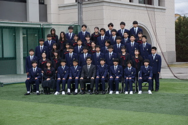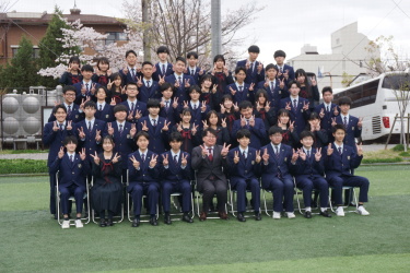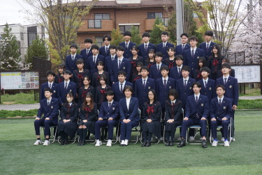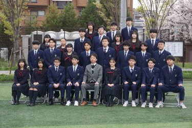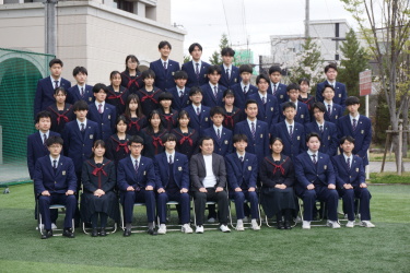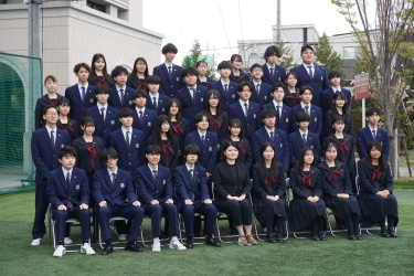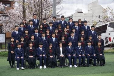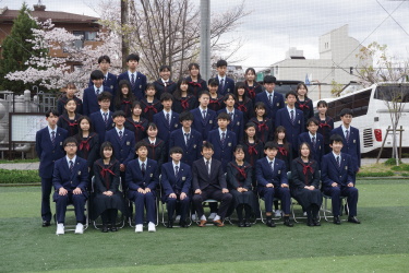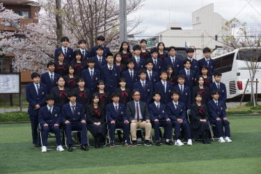 2024.04.09 校長・理事長通信 クラス写真を撮りました(全学年) 4月9日(火)に、グラウンドで、各クラスの集合写真を撮りました。風が強かったですが、心配されていた雨も上がり、3学年、とても良い表情で撮影できました。