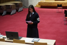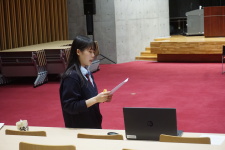 4月24日(水)1限目に、2024年度前期生徒会役員に立候補してくれた皆さんの立会演説会を、記念ホールに集合して、zoomで行いました。定数10名のところ、20名が立候補してくれました。立候補の動機や、当選後にやりたいことなどを、身振りを交えながら、力強く訴えてくれました。演説終了後、直ちに電子投票を行いました。最後に、2023年度後期生徒会役員の皆さんが、お礼の挨拶をしてくれました。よく頑張ってくれました。ありがとうございました。