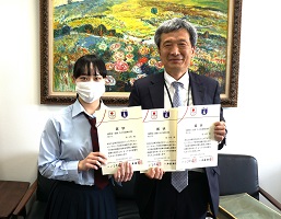 4月20日(土)、21日(日)に、宮城県仙台市・カメイアリーナ仙台(仙台市体育館)で、第32回JOCジュニアオリンピックカップ武術太極拳大会が開催されました。履正社高校3年生女子が出場し、長器械、長拳で優勝、短器械で第2位の立派な成績をおさめてくれました。今日4月30日(火)に、校長室で、賞状とメダルを見せていただき、記念写真を撮りました。7月には、世界大会予選が開催され、その出場資格も獲得しました。履正社高校には太極拳部は、ありませんが、文武両道で頑張ってくれていて、とてもうれしいです。