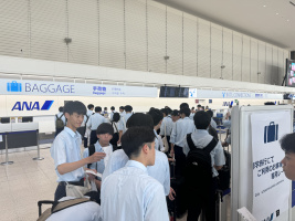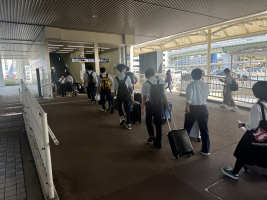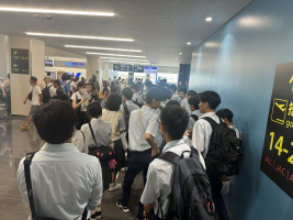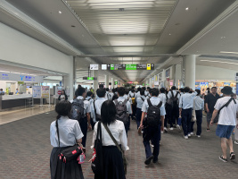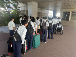 履正社高校学藝コースは、2年生の時に希望により、沖縄・北海道・海外(マレーシア、シンガポール)の3方面で、実施しています。なお、競技コースは、同じく2年生の2月に、北海道に行きます。沖縄修学旅行は、7月8日(月)~12日(金)に実施しました。1日目は、飛行機で伊丹空港から那覇空港、バスで「おきなわワールド」に行き、散策、見学ののち、名護市内のホテルに泊まりました。