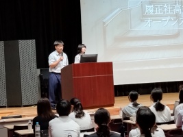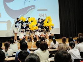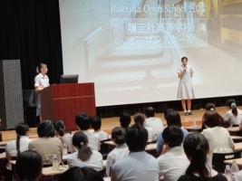 7月28日(日)に、第1回オープンスクールを開催しました。9時30分から、記念ホールに、お集まりいただき、まず、ダンス部の皆さんが、オープニングでダンスを披露してくれました。私から、スライドとパンフレットを用いて、履正社高校の教育内容と入試の説明をさせていただきました。最後に生徒会の皆さんから、あいさつと動画を用いた学校紹介を行い、同じ内容をオンラインでも、配信させていただきました。説明会終了後、希望の皆様に、個別相談と学校見学をしていただきました。生徒会の皆さんが、「しゃべり場」~食堂で生徒会としゃべろう!~を開催し、希望の中学生のいろんな質問に答えてくれました。本日は、参加ご希望の方が多数のため、13時30分からも、開催させていただきました。午後のオープニングは、チアリーディング部がパフォーマンスを披露してくれました。多くの皆様に、ご参加いただき、誠にありがとうございました。