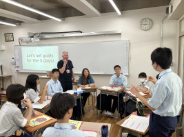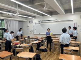 履正社高校では、希望者を対象に、8月 1 日(木)~3日(土)に、 校内でNOVA Global Program を実施します。16名が参加してくれました。今日は、講師の出身国の観光名所や文化、歴史についてクイズ形式で出題し回答する「異文化理解クイズ」、地図を片手に施設内に隠された問題を探して、チームで協力して全問正解をめざす「トレジャーハント」、日本の魅力を伝える準備などのアクティビティを行いました。