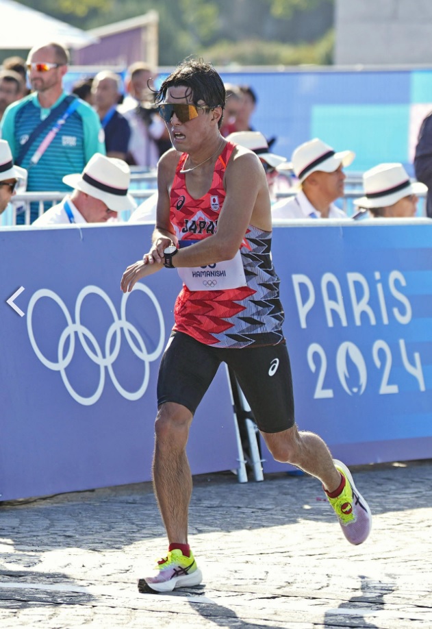 8月1日(木)に実施されたパリオリンピック男子20km競歩に、履正社高校陸上競技部出身の濱西諒選手(サンベルクス)が出場されました。1:20:33の記録で、18位でフィニッシュされました。濱西選手の試合後のインタビューです。「出るからには入賞の目標を掲げていた。達成できない悔しさはあるが、4月のトルコの20キロが52位の結果に終わっていた。そこに比べたら、この4カ月で、改善できることは改善できた。夏以降、来年の世界陸上の代表権獲得に向け、収穫が大きかったレースだった。日本選手権では警告2枚出ていた。トルコのレースは中盤以降、まったく歯が立たなかった。今回のレースは15キロまでですけど、そこまで粘ることが出来たのは1つ成長したところ。ただ、ラスト5キロ対応できていないので、今後の一番の課題。新参者が戦うにはまだ早いという現実を突きつけられたと思う。全部が全部、初めての経験なので。それも1つの大きな経験。来年以降、日本のレースで遅れることがあったら対応できるように、勉強と言うことで持ち帰りたいと思います。」お疲れ様でした。履正社高校に新たな歴史を刻んでくださいました。ありがとうございました。(写真とインタビューは、「日刊スポーツ」に掲載されていたものです。)日刊スポーツが、「もしもスーパーの店員がオリンピック代表選手だったら」の見出しで、濱西選手の記事を掲載してくださいました。こちらをクリックしてください。