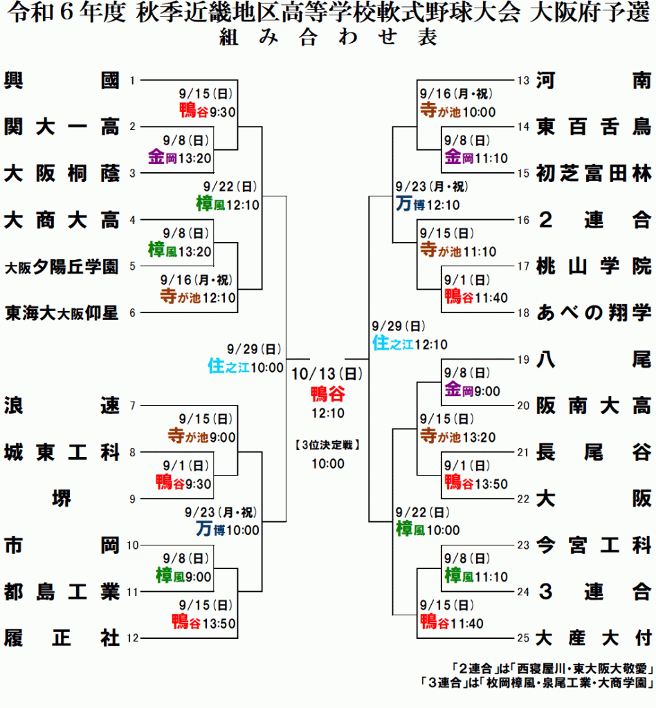 秋季近畿地区高等学校軟式野球大会大阪府予選の組合せが決まりました(軟式野球部:学藝コース)