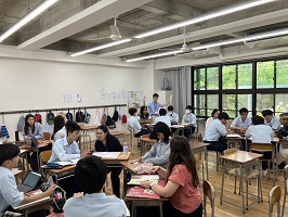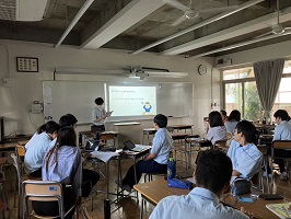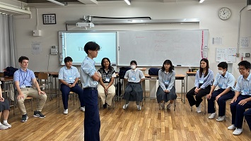 8月3日(土)は、いよいよ最終日。まず、京都大学の留学生の皆さんから「現在の夢と実現に向けたアクション」について、プレゼンテーションがありました。続いてChallenge Activityとして、第2日目に準備をした「アイデンティティ」「強みと弱み」について、ディスカッションを行った後、留学生の皆さんに校内を案内する「スクールガイド」を行いました。最後に、3日間を振り返り、「3日間のプログラムで学んだこと」「心境の変化」について、Final Presentationを行いました。終了後の生徒さんの感想です。「本当に楽しかった!このプログラム参加して本当によかったです!」「講師の方が本当に明るくて優しくて、お土産もいっぱいもらえて最高でした!」