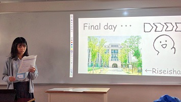 よかったですね。私もうれしいです。でも「楽しかった」だけで終わらないように、ポートフォリオなどで記録を残し、この3日間で感じた各自の英語力不足(語彙力不足)などを整理し、2学期以降の学習に繋げてくださいね。そして、総合型選抜等でこのプログラムの体験を活用できるように準備しておきましょう!3日間本当にお疲れ様でした!Thank you for your participating!