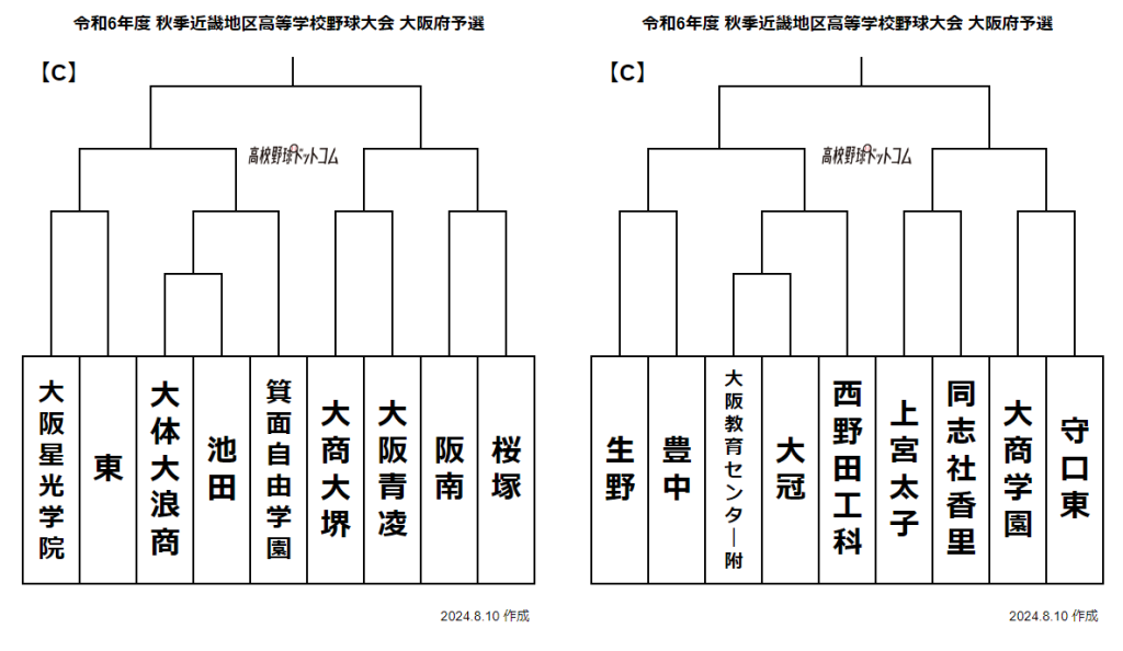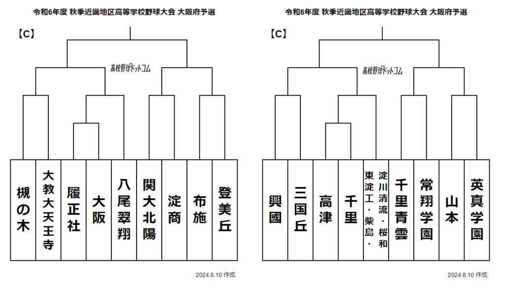 2024.08.11 校長・理事長通信 秋季近畿地区高校野球大阪府予選の組合せが決まりました(硬式野球部) 8月10日(土)に抽選が行われ、秋季近畿地区高校野球大阪府予選の組合せが決まりました。履正社高等学校硬式野球部は、Cブロックの1回戦で、大阪と対戦します。新チームにも温かいご声援をよろしくお願いいたします。