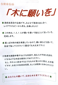 2024.09.21 校長・理事長通信 文化祭(生徒会企画:階段アート、木に願いを) 生徒会が、様々な企画を考えて、文化祭を盛り上げてくれています。本館の階段には「階段アート」。食堂の前には、「木に願いを」。皆さんも、葉に願いを書いて、立派な木を育ててください。