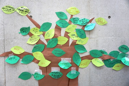 生徒会企画の「木に願いを」。皆さんのご協力のおかげで、立派な木に育ちました。ありがとうございました。