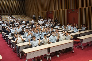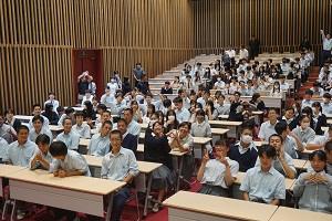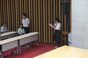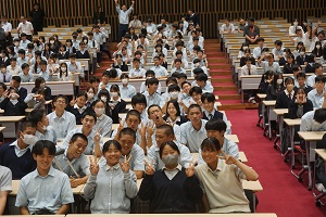 10月2日(水)の、お昼休みに、記念ホールで、先日の選挙の結果、選出された後期生徒会役員と各クラスの委員の皆さんの認証式を行いました。生徒会会長と学級委員代表に、認証状をお渡ししました。学校及びクラスのリーダーである皆さんの力で、履正社高校を盛り上げていきましょう!大いに期待しております!
