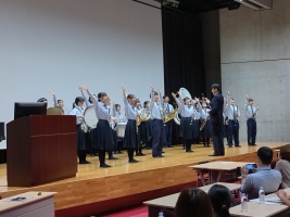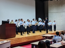 10月5日(土)に、第6回オープンスクールを開催しました。13時30分から、記念ホールに、お集まりいただき、まず、吹奏楽部の皆さんが歓迎の演奏を披露しました。続いて私から、スライドを用いて、新しい履正社高校の説明をさせていただき、教頭から、入試の説明をさせていただきました。最後に、新しく選ばれた後期生徒会の皆さんから、あいさつと動画を用いた学校紹介を行い、同じ内容をオンラインでも、配信させていただきました。希望の皆様に、個別相談と学校見学をしていただきました。生徒会の皆さんも、食堂で「しゃべり場」を開催し、中学生からの質問に答えてくれました。今回も多くの皆様に、ご参加いただき、誠にありがとうございました。