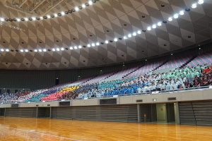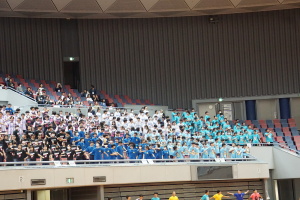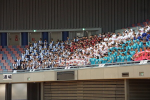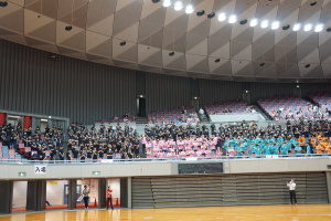 10月10日(木)に、大阪市中央体育館(Asueアリーナ大阪)で、2024年度体育祭を開催しました。まず、開会式を行い、生徒会会長さんの開会宣言、私の開会の辞に続き、生徒会体育部長さんが、力強く選手宣誓を行ってくれました。準備体操を行い、大会上の諸注意の後、競技がスタートしました。