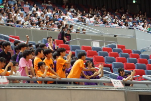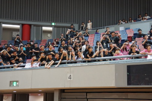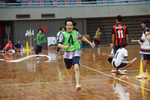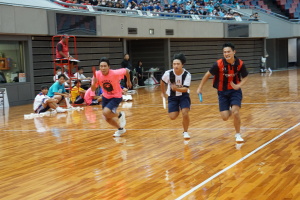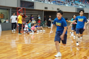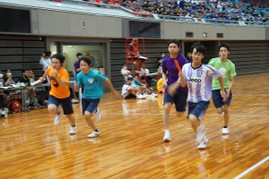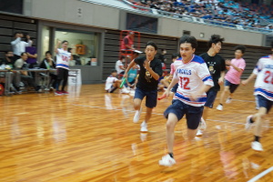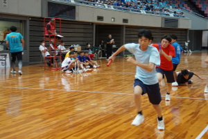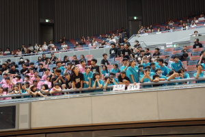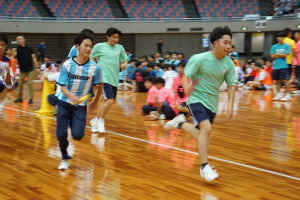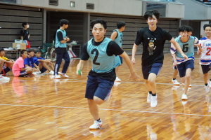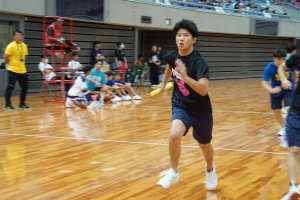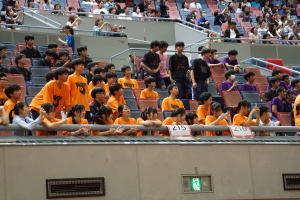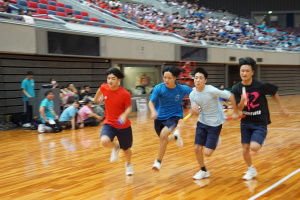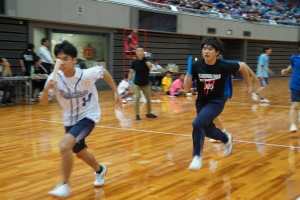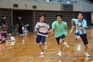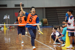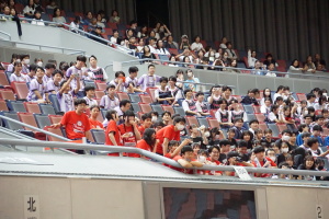 2024.10.10 校長・理事長通信 体育祭(男子リレー) 最後の競技は、「男子リレー」。各クラス5人がチームを組み、1人1周走って、バトンを繋ぎました。優勝がかかった最後の競技で、スタンドの応援も最高潮になりました。