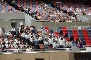 すべての競技が終わり、閉会式を行いました。まず成績発表を行いました。私が講評を述べたのち、生徒会会長さんが、閉会宣言を行い、2024年度体育祭が終了しました。お忙しい中、観戦してくだった保護者の皆様、元気いっぱいの実況で、盛り上げてくれた放送部の皆さん。企画・運営・進行をしてくれた生徒会の皆さん、準備・片付けを手伝ってくれた強化クラブの皆さん、何より、一生懸命、競技に参加してくれた生徒の皆さんを始め、先生方すべての皆さんに、心よりお礼申し上げます。ありがとうございました。