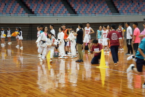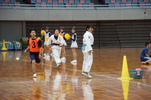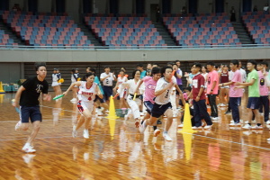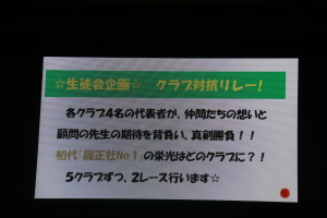 お昼休みに、「クラブ対抗リレー」を行いました。生徒会の皆さんが新たに企画してくれた種目です。参加希望クラブが多く、抽選の結果、選ばれた10のクラブが、出場しました。柔道部女子のチームは、受け身などのパフォーマンスを行い、会場を盛り上げてくれました。