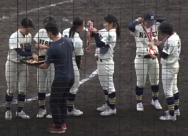 10月14日(月)に、第20回記念全日本女子硬式野球選手権大会準決勝で、履正社高校女子硬式野球部は、神戸弘陵学園と対戦し、3-5で、残念ながら敗れましたが、全日本第3位の成果を上げてくれました。ダブルヘッダー、お疲れ様でした。最後まで、よく頑張りました。引き続き、ご声援をよろしくお願いいたします。(画像は、「MADONNA JAPAN TV」の画面キャプチャーです。)