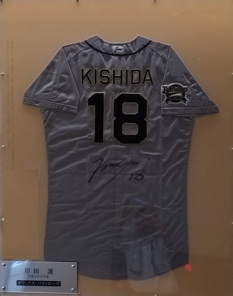 プロ野球オリックスバッファローズの新監督に、岸田護さんが就任されました。岸田さんは、履正社高校硬式野球部の出身です。オリックスに入団されたときに寄贈していただいた当時のユニフォームを、展示いたしました。ご来校の節は、ぜひご覧ください。岸田新監督のご活躍を祈念しております。