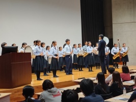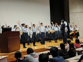 10月26日(土)に、第7回オープンスクールを開催しました。9時30分から、記念ホールに、お集まりいただき、まず、吹奏楽部の皆さんが歓迎の演奏を披露しました。続いて私から、スライドを用いて、新しい履正社高校の説明と、入試の説明をさせていただきました。最後に、生徒会の皆さんから、あいさつと動画を用いた学校紹介を行い、同じ内容をオンラインでも、配信させていただきました。説明会終了後、中学生の皆さんには、国語、社会、数学、理科、英語、情報の6教科で、体験授業を受けていただき、希望の皆様に、個別相談と学校見学をしていただきました。今回も多くの皆様に、ご参加いただき、誠にありがとうございました。