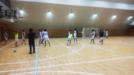 履正社高校男子ハンドボール部(学藝コース)は、11月14日(木)19時より、大商学園高校の体育館をお借りして、練習試合をさせていただきました。 本校1年生部員が初めて前半(25分)にフル出場し、11月23日(土)の市民大会に向けて、技術面・体力面の確認を しました。また、後半(25分)は、2年生がフル出場し、昨年、対戦したときと比べて成長している面もありました。 練習試合の結果は、 前半(履正社1年生)5-22 、後半(履正社2年生)9-10でしたが、1年生の皆さんは、良い経験を積んでくれたことでしょう。来週の市民大会での健闘を期待しております。引き続き、ご声援をよろしくお願いいたします。