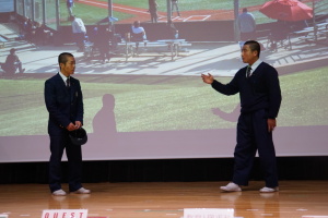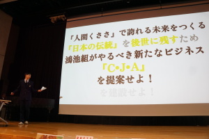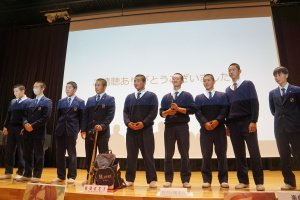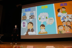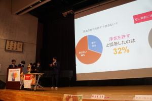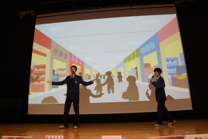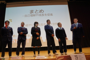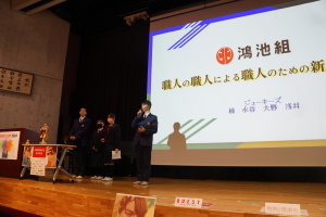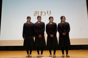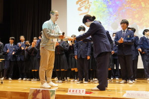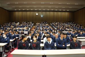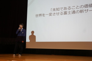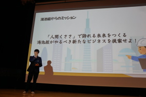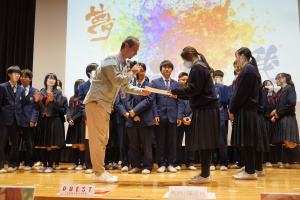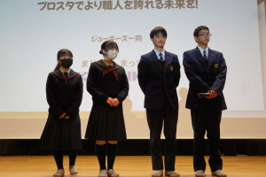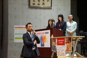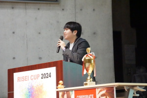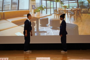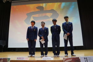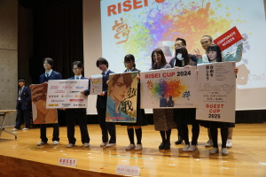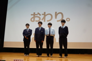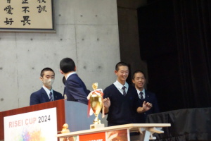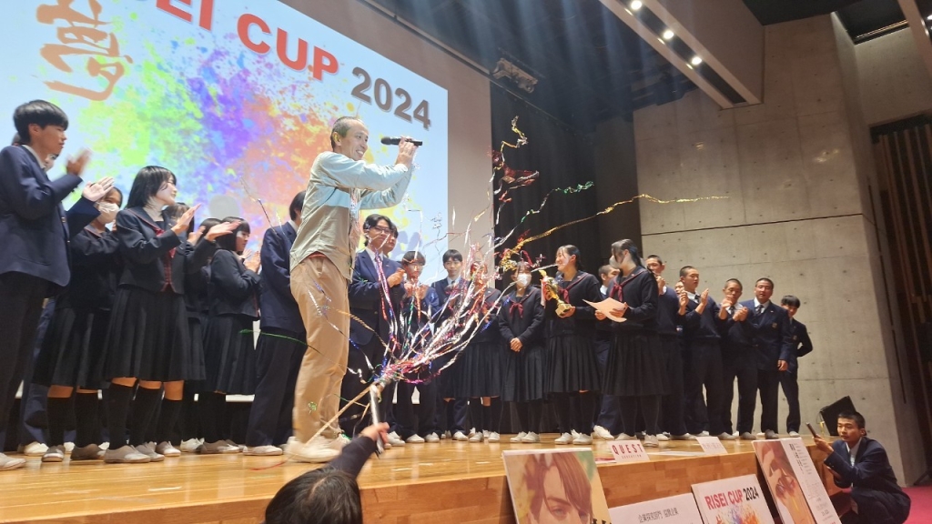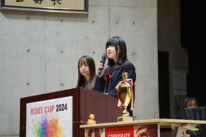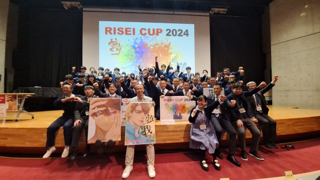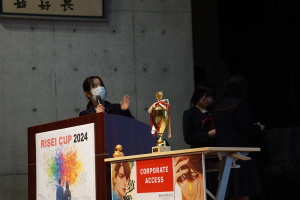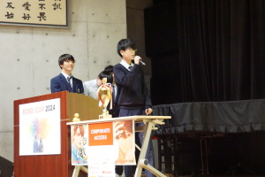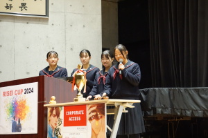 12月5日(木)に、2年生が取り組んだ「企業探究コース コーポレートアクセス」の発表を行いました。2年生は、新入社員として入社した企業から出されたミッションを実現する企画制作に取り組みました。2年生も各クラスで、クラス発表会を行い、そこで選ばれたクラス代表17チームが、午前9チーム、午後8チームに分かれて発表を行いました。今日もデザイン・企画・統括・舞台・誘導の各セクションのプロジェクトメンバーが、運営してくれました。審査は、「教育と探求社」に加え、協力いただいた企業からもお越しいただきました。どのチームも工夫を凝らして、7分間の発表を行いました。審査の結果、グランプリに2年1組「パピヨン」(ロート製薬)、準グランプリに2年7組「新しい出会いに拍手」(イオンリテール)、第3位に2年5組「Polaris」(LINEヤフー)が、選ばれました。おめでとうございます。表彰と講評のあと、全員で記念写真を撮りました。2年生も、RISEI CUPに出場できなかったチームも、企業の強みや特徴をよく調べ、斬新なアイデアを考えてくれました。午後の発表も楽しみです。