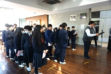 1月14日(火)に、インドネシアから、サンタウルスラ女子高が来校されました。今日から17日(金)までの4日間、履正社中学・高校で、生徒たちとの様々な交流を計画しています。今日は、13時15分に、バスで到着後、 5時間目に、食堂で開会式を行いました 。6時間目は、中学1年生が、校内を案内しました。放課後は、バディ生徒と顔合わせを行った後、剣道部の練習を見学・体験していただきました。