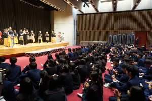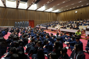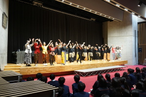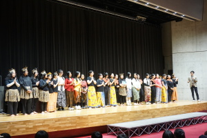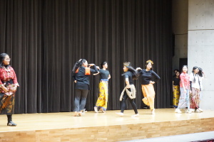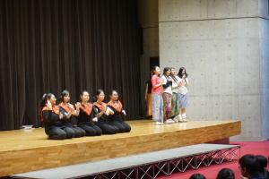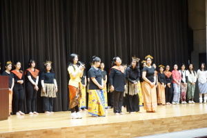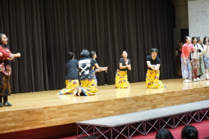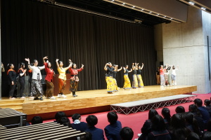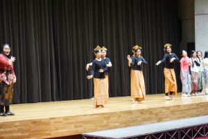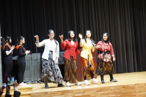 3日目の16日(木)は、午前中は、バディとともに授業に参加していただきました。当初は、1、2時間目のみ授業参加で、3、4時間目は別の活動を計画していましたが、昨日までの活動を受け、もっとバディや生徒たちと時間を過ごしたい、履正社での時間をもっと取りたい、授業に出たい!という強い希望がサンタウルスラ女子高から示されましたので、それを受けて、4時間ともバディとともに授業に参加していただきました。午後からは記念ホールで、「文化交流」を行い、サンタウルスラ女子高の生徒さんたちは、様々な民族衣装を身にまとい、インドネシア伝統の歌と踊りを、披露してくれました。