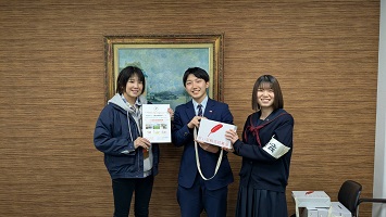 生徒会は、1月14日(火)~21日(火)に、正門や玄関前で、あいさつ運動とともに、「赤い羽根共同募金」を行いました。1月31日(木)に、大阪府共同募金会の方にお越しいただき、集まった募金をお渡ししました。協力してくださった生徒さんや生徒会の皆さん、ありがとうございました。皆さんの善意が、きっと実を結ぶことでしょう。