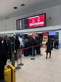競技コース2年生は、2月4日(火)~7日(金)に、3泊4日で、北海道にスキー修学旅行に行きます。大阪国際空港に集合を完了し、荷物の預け入れを行っています。8時の便で、新千歳空港に向けて出発します。 楽しい思い出をいっぱい作ってください。