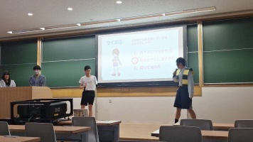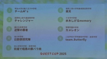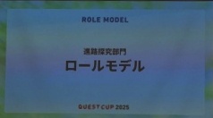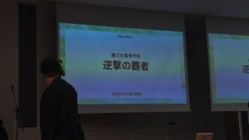 2025.02.23 校長・理事長通信 「QUEST CUP」(1年生:発表開始) ロールモデルでは、全国の予選を勝ち抜いた9チームが発表を行いました。どのチームも個性豊かで、水木しげるさんをロールモデルとした「逆撃の覇者」も、熱演でした。
