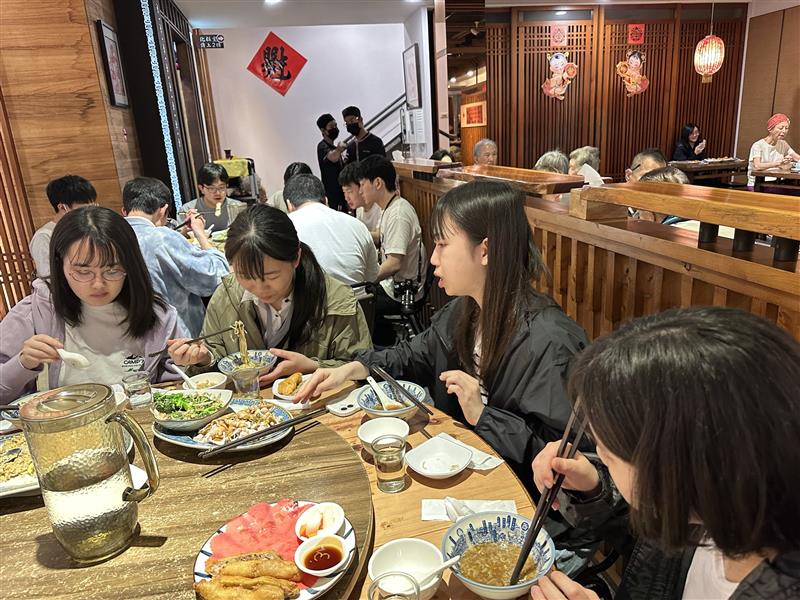 台南ではまず夕食をいただきます。台南の名店、「度小月」さんで、円卓を囲んでの夕食会。日本とは違う味付けや、台湾名物(大人の味)のからすみなども食卓に並び、これはみなさんおっかなびっくり口に運んでいましたね。ニンニクの効いた空芯菜や、優しい味付けのつみれスープなどもあった中、一番人気はチャーハンだったようです。