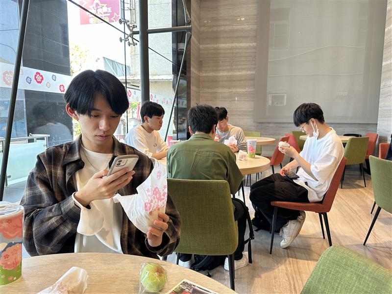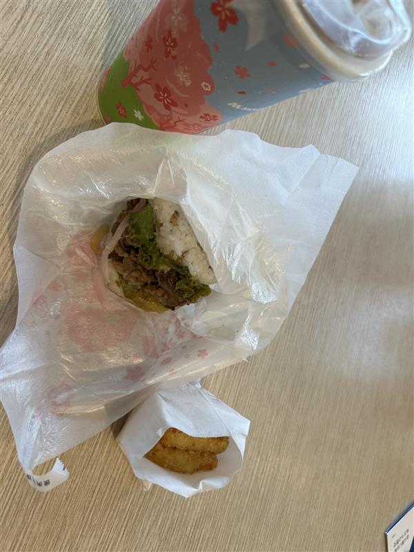 ホテルに戻った生徒たちに手渡されたお昼は、なんとモスバーガー。え? せっかくの台湾でファストフード? と侮るなかれ。日本のハンバーガーチェーンであるモスバーガーを台湾で食べるのも、フィールドワークのうちなのです。事前に希望を伝えてメニューを選んであったのですが、焼肉バーガーは、いわゆるライスバーガーで、日本のものとは少し味付けが違い、とても美味しいと評判でした。また、頼んだ紅茶は甘い! 南国を感じますね。そしてポテトも漢字の田の形をしていて、食べ応えがあります。生徒は大満足だったようです。