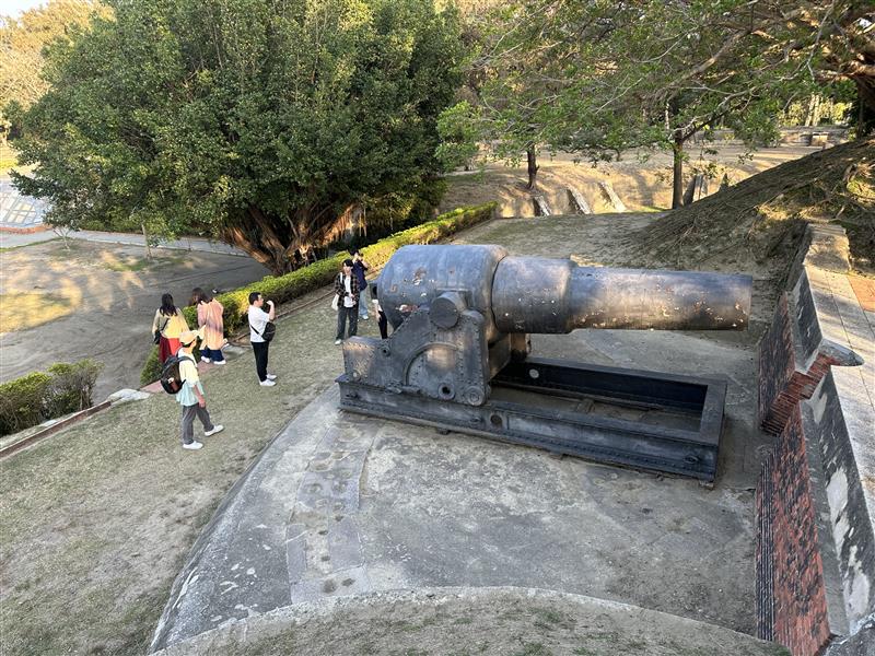 本日最後の訪問地は「億載金城(おくさいきんじょう)」。函館の五稜郭のような四稜の城郭で、アームストロング砲が海を睨む、清朝時代に台湾出兵で押し寄せた日本軍を迎え撃った砲台です。15分もあれば周囲をぐるりと歩けるくらいの大きさですが、そろそろ日も傾き始めた時間帯、まさに夏草や……と一句詠みたくなるような静かな時間が流れます。かつてこの砲台の照準の先にいたのが日本だという事実にもまた、複雑な気持ちにさせられます。