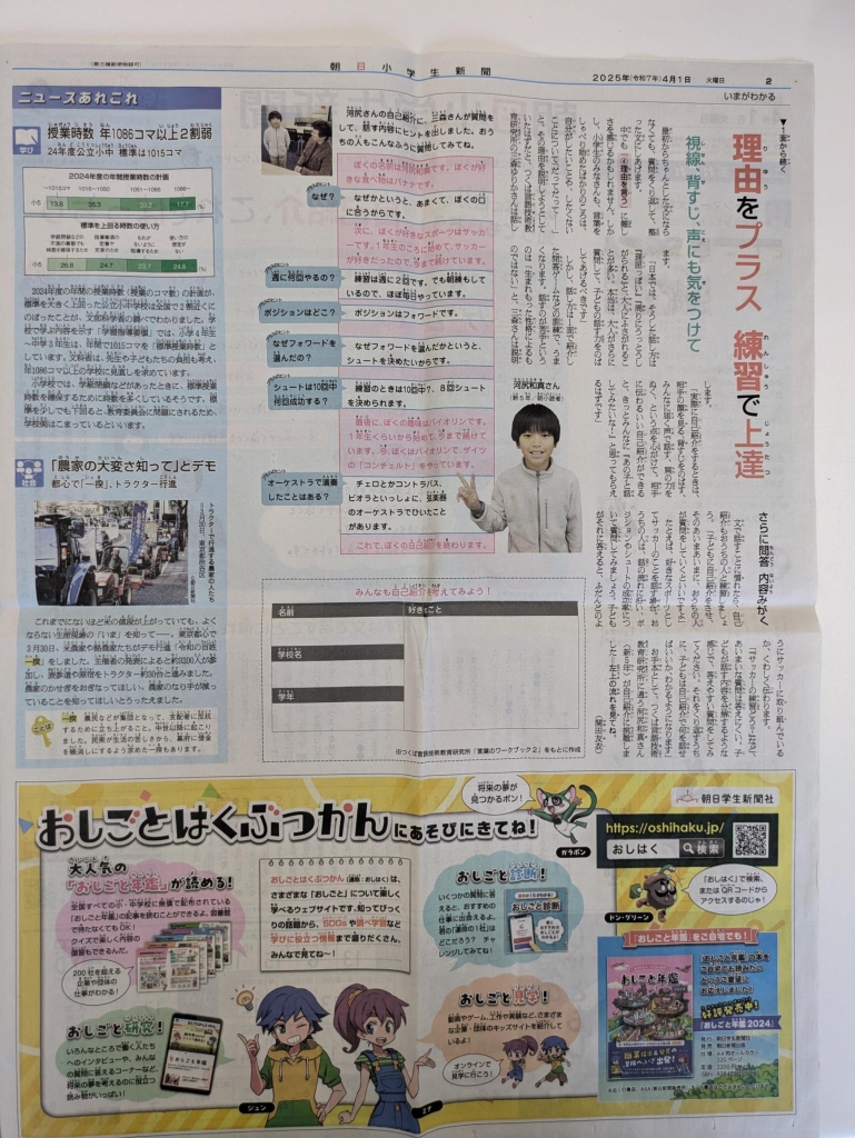 【言語技術科】朝日小学生新聞への掲載