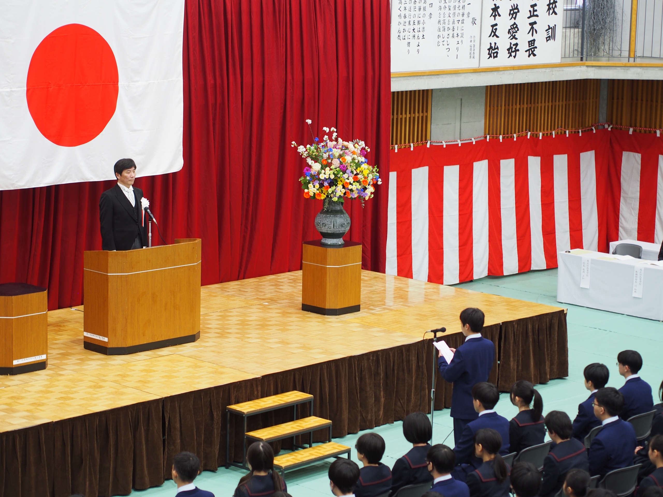 結びにあたり、ご臨席の保護者の皆様、お預かりいたしました大切なご子女、一人ひとりの夢の実現に向け、我々教職員一同は全力を尽くして教育活動に取り組んでまいります。各ご家庭におかれましても、本校の教育理念・実践にご理解とご支援を賜りますよう切にお願い申し上げまして、私の式辞といたします。