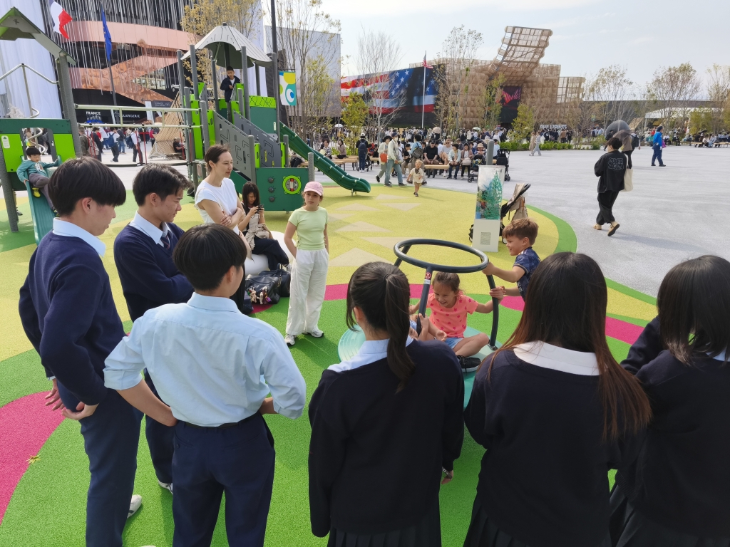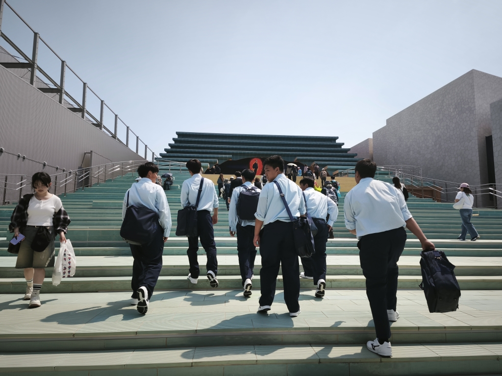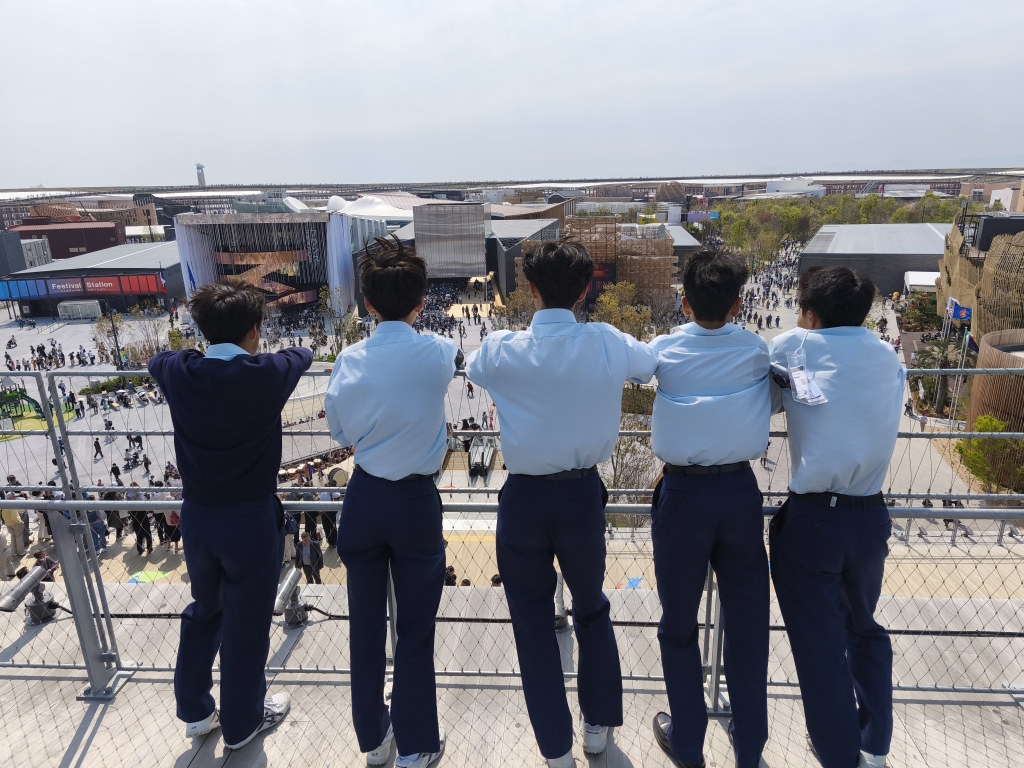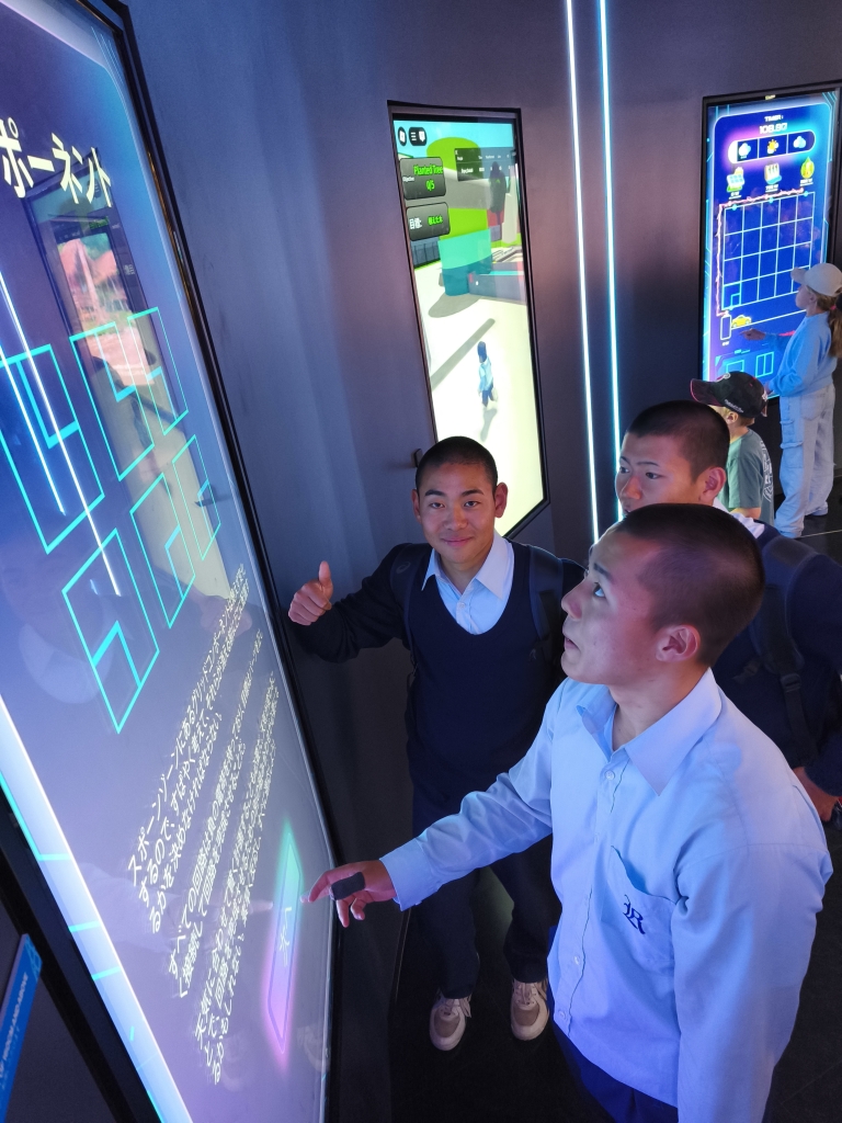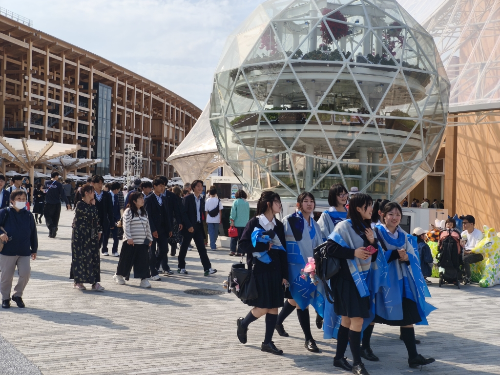 校外学習の目的のひとつは「団体行動を通じ、規律ある態度を養い、クラスの連帯を深める」ことです。もうひとつは「Society5.0の未来社会を共創するための知識を得る」ことですが、多くの生徒たちがパビリオンの中で目を輝かせて学んでいる姿が印象的でした。未来社会を体感し、世界中を身近に感じることができたでしょう。