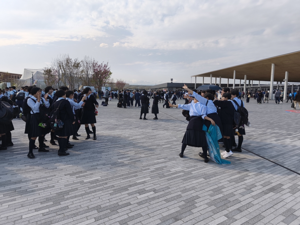 4月17日、高校の校外学習で「大阪・関西万博」へ行ってきました。今年の校外学習は、本校へ留学中のMassey HighSchoolの生徒達も一緒に参加し、とても国際色豊かな経験となりました。