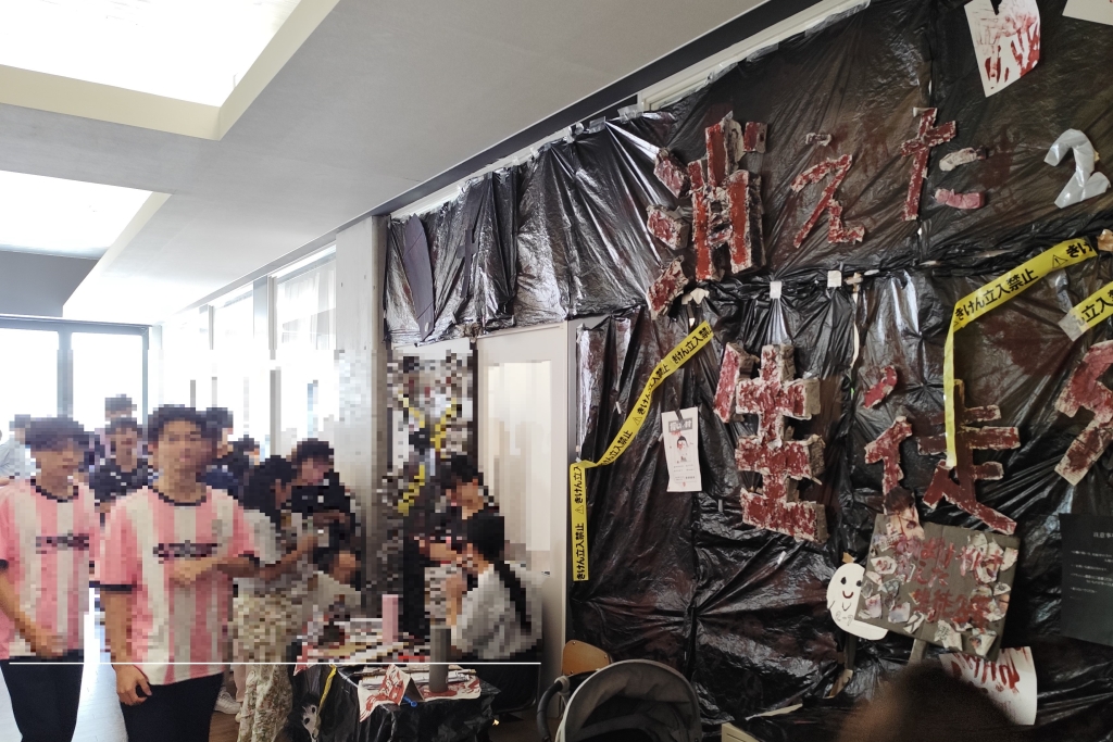 それでは、文化祭の中身の紹介です。まずは初日。第1部(半日)は、各クラスの展示&教室イベントがメイン。そして記念ホールでの軽音楽部のライブを加えて華々しく開幕しました。