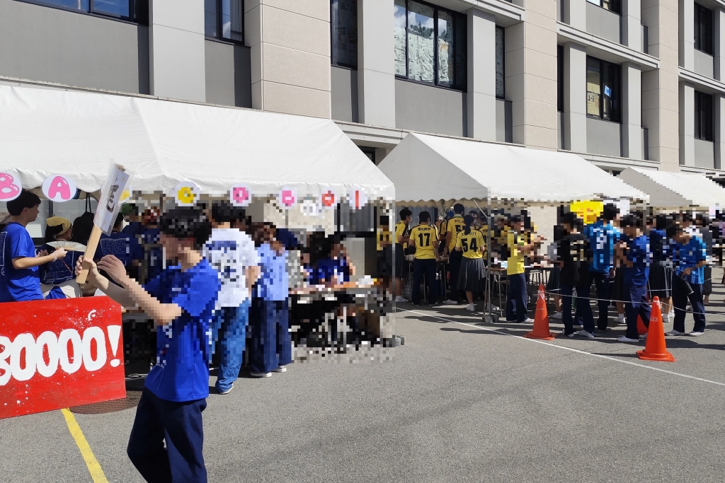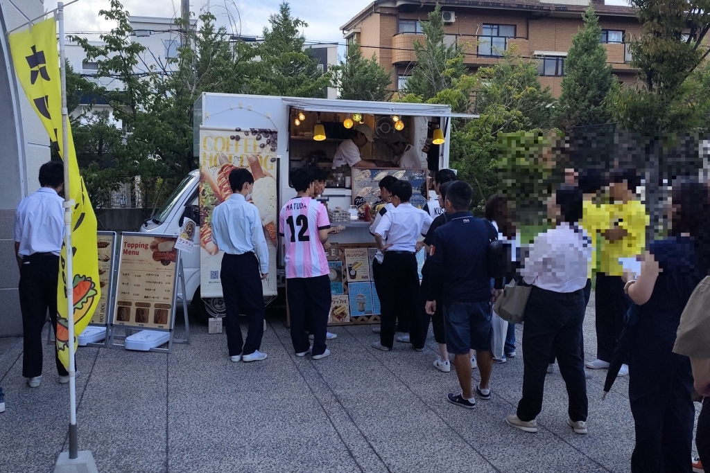 当日、中高全生徒約2000名に加え、2日間で延べ2500名超のご家族来場者を迎えましたが、昨年より遥かに来場者が増えているにも関わらず、混雑感は例年より感じさせませんでした。それは、心地よい秋晴れが屋外スペースの活用を促進させたこともありますが、生徒の模擬店以外に4台のキッチンカーを招致し、食堂も臨時営業したことで飲食ブースを拡充し、食事用のフリースペースを増設したことなどから、人の流れがスムースになったことがその要因の一つかもしれません。