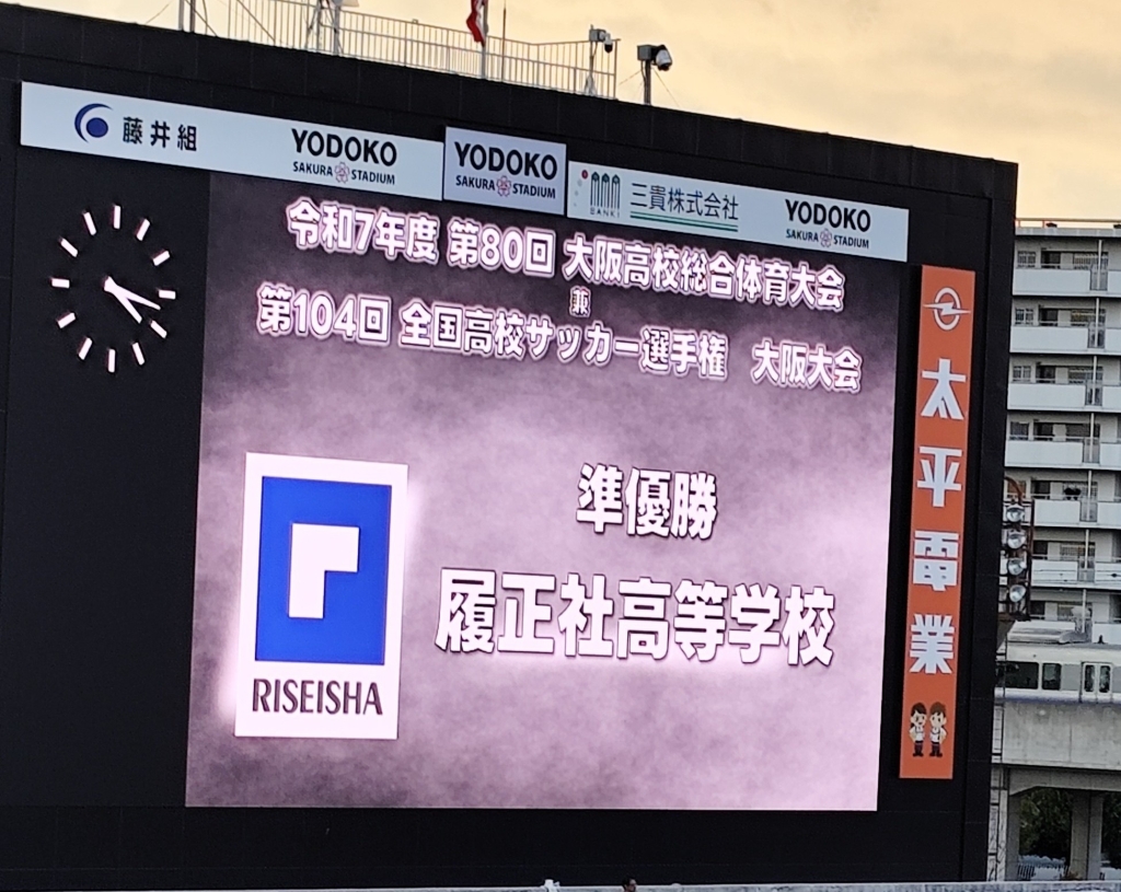 履正社高校サッカー部員・スタッフの皆さん、本当にお疲れさまでした。結果はさておき、非常に白熱したgood gameを見させてもらいました。また、学校から授業終わりに直接現地に乗り込んでくれた本校生徒諸君、多数駆け付けていただいた保護者・OB・OGなどを交えた大応援団。皆の声援は選手たちに勇気と力を与えただろうし本当に頼もしかったです。ありがとうございました。そして、同じく大応援団を繰り出しスタジアム全体で鎬を削った興国高校さん。聞くところによると昨年準決勝PK戦で本校相手に逆に涙を呑み、そのリベンジを果たす形で6年ぶりの全国出場だそうです。まずはおめでとうございました。両チームがあってこその素晴らしい決勝戦でした。12月の全国大会では大阪代表として優勝目指して頑張ってください。心より健闘をお祈り申し上げます。