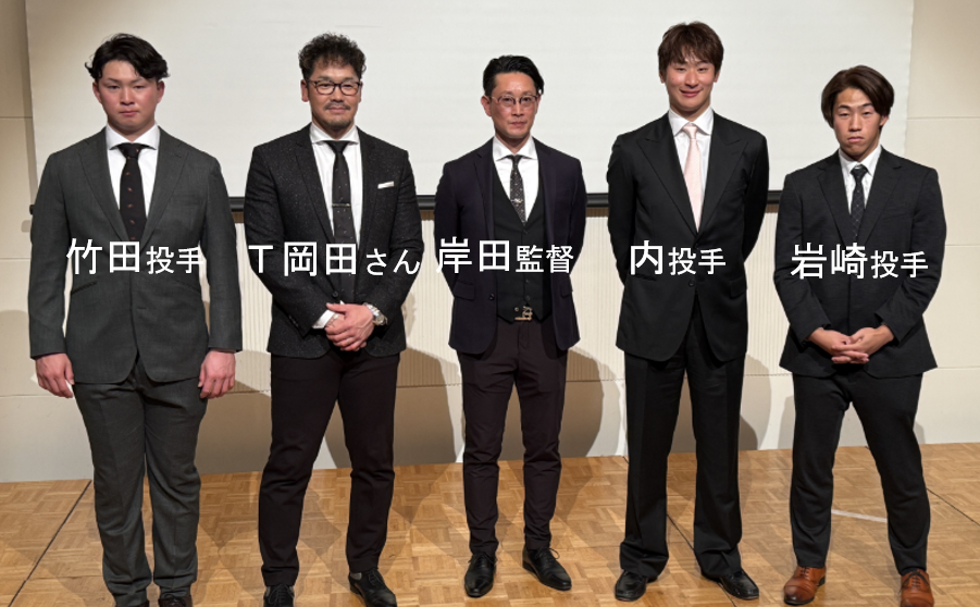 因みに冒頭の写真は、去る12月26日に履正社法人本部・校友会主催で催された「オリックス・バッファローズ 岸田 護 監督激励会」での1コマで、上の5名の本校OBプロ野球選手と本校教職員たちの一葉でした。