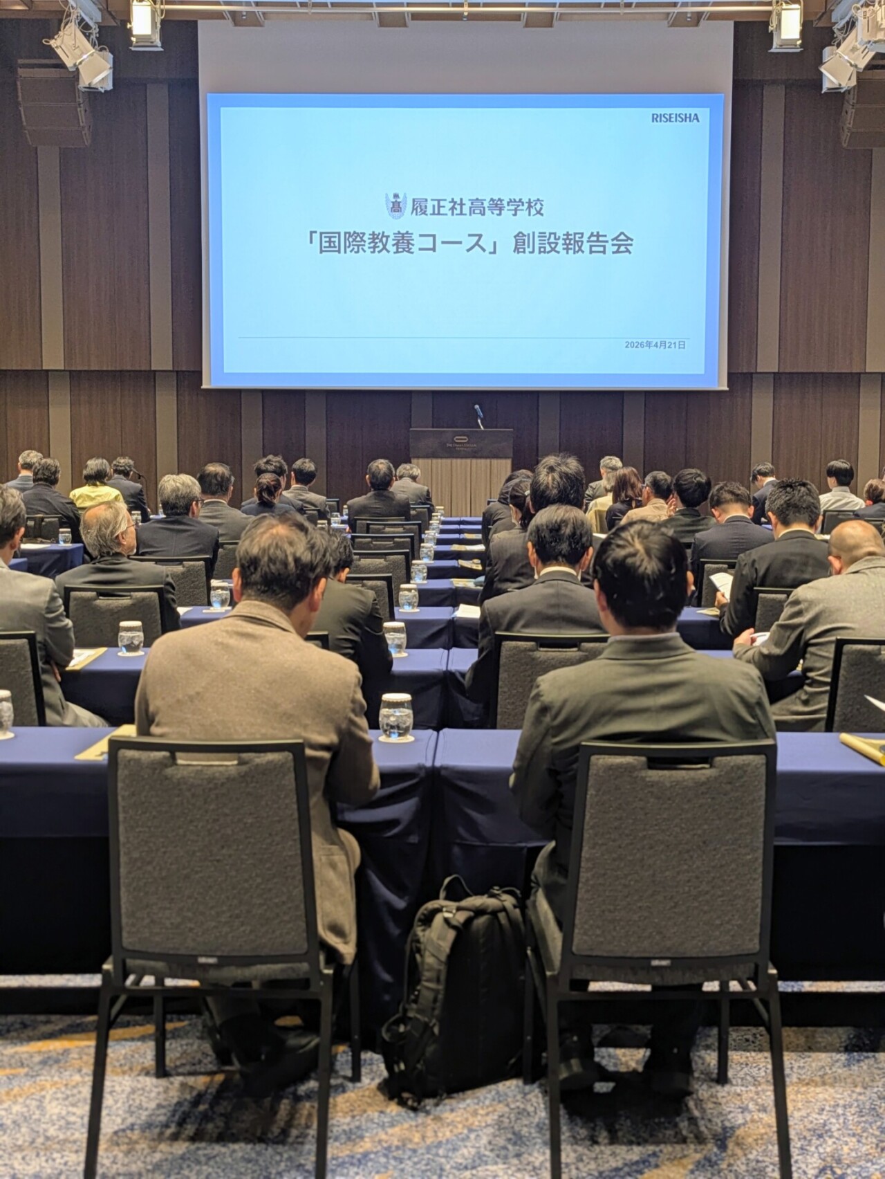 本日、大阪市内のホテルにて学習塾・教育関係者の皆さまを中心にお招きし、2027年度に創設される履正社高校「国際教養コース」の創設報告会を行いました。