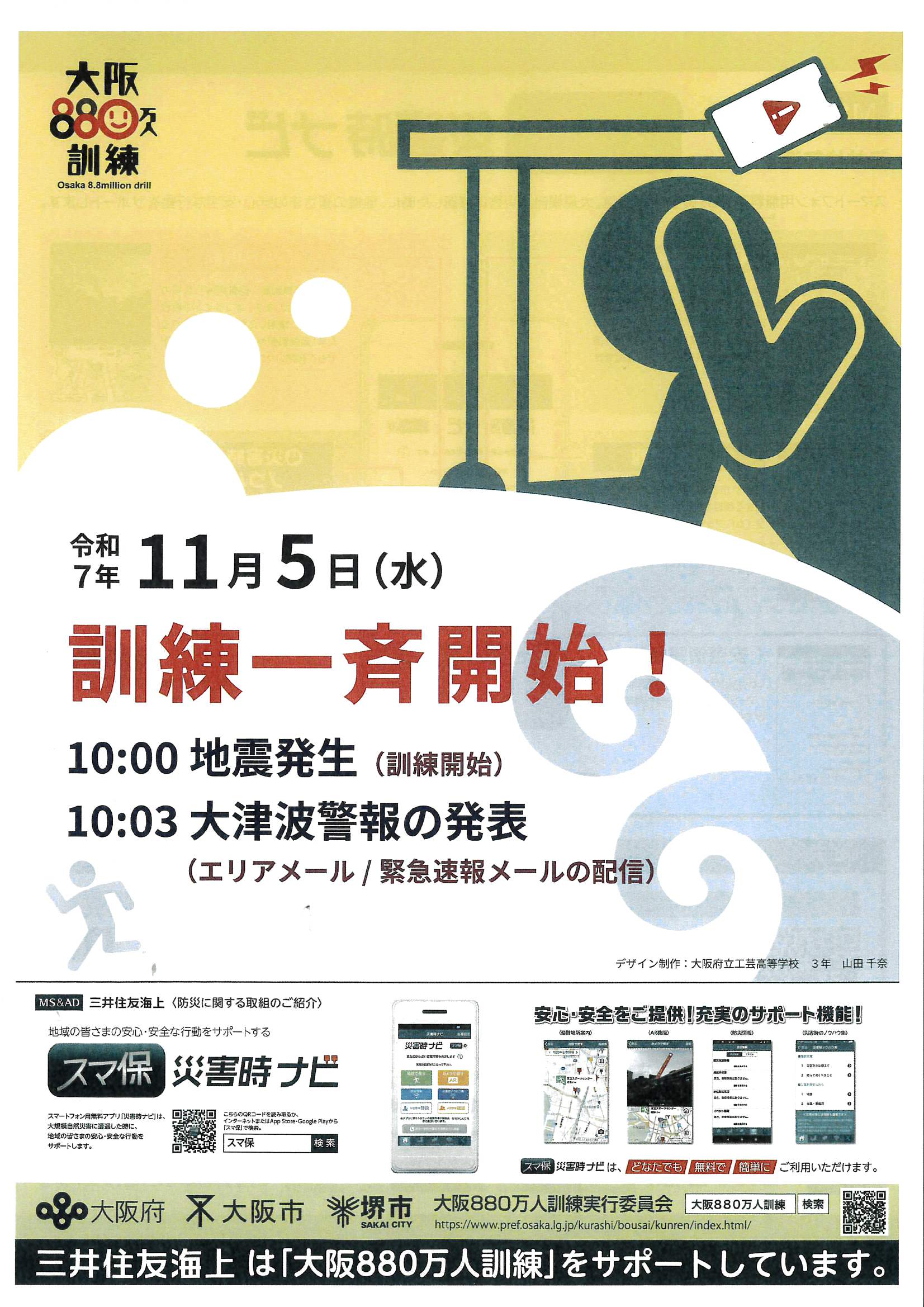 今日の訓練は気象庁と大阪府の「大阪880万人訓練 訓練一斉開始!」参加したものです。
