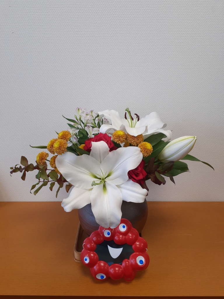 江川撮影 校長室のお花とミャクミャク (12/18金)
