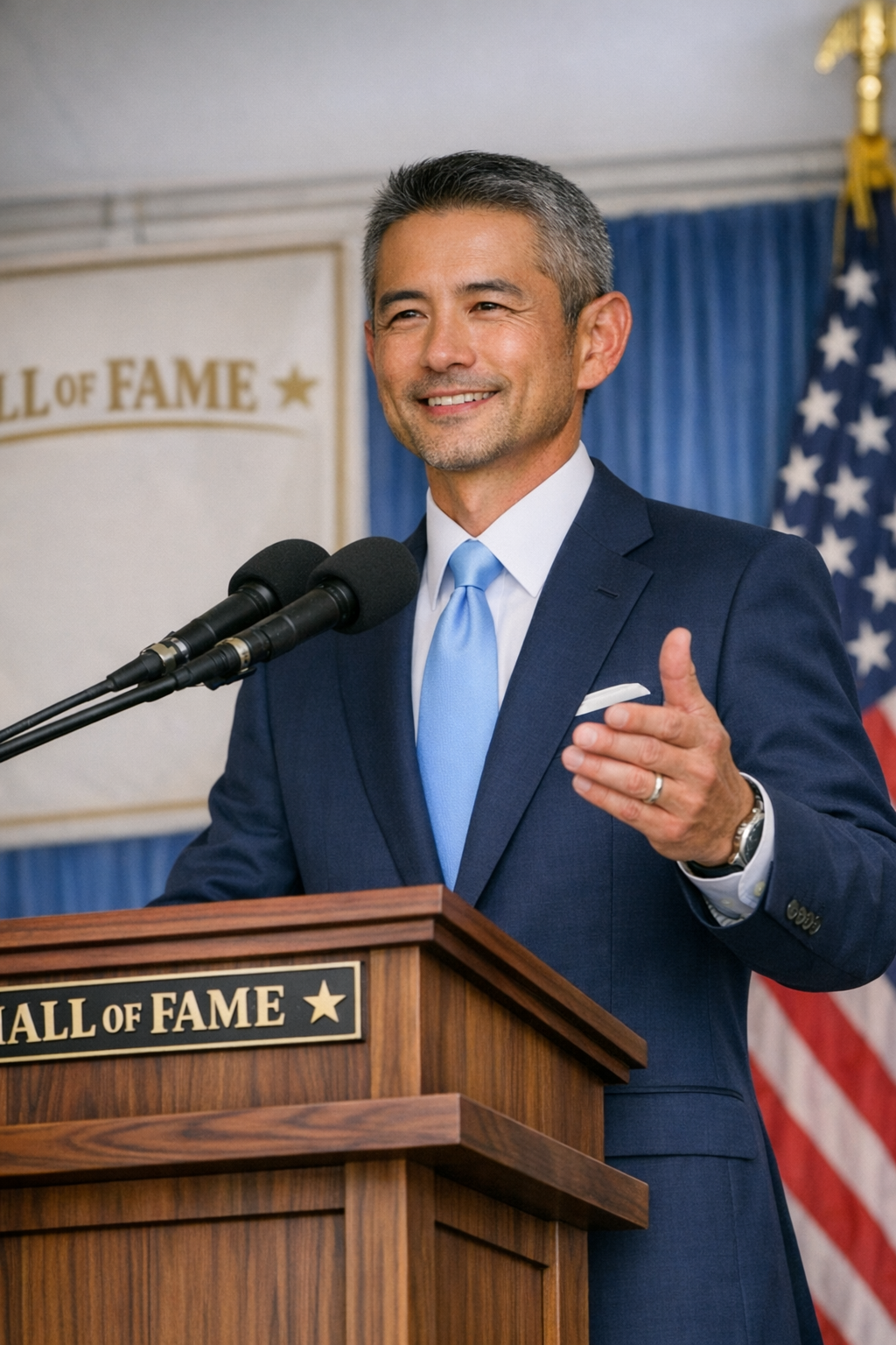 (イチロー殿堂入り表彰式時のスピーチのイメージを江川がAIによって作成しました。)