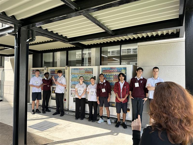 校内では、生徒たちの自転車がずらりと並ぶ自転車置き場にも興味津々。でも生徒たちが一番興奮したのは自動販売機。中でもNZでは売っていないファンタグレープが日本に来てからの大ブームのようで、それを自販機に見つけて狂喜乱舞していました。