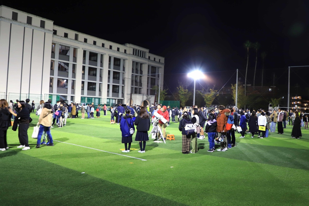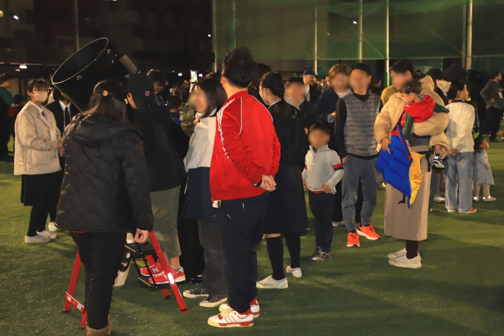 11月1日(土)の夕刻、快晴の空のもと、「STAR WATCHING」が開催されました。折から「レモン彗星の接近」と「土星の輪の消失」というマスコミにも何度も取り上げられた天体現象の真っ最中だったこともあり、約600人もの方が本校に集まりました。この日は天も味方してくれたようで、雲一つない快晴にも恵まれ、また後半には宇宙ステーションが上空に現れて、夜のグラウンドに時ならぬ大きな歓声がわきました。それでは当日の様子のご報告をしたいと思います。
