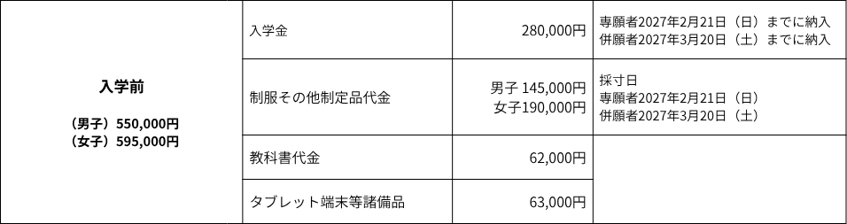※いったん納入された入学金・諸費(入学前納入金)は、理由の如何を問わず一切返金できません。