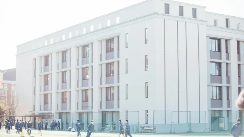 外装は、歴史を感じさせる白基調のクラシックなデザイン。内部はコンクリート、木、鉄が調和するシャープで現代的な空間。伝統と革新が息づく学び舎です。