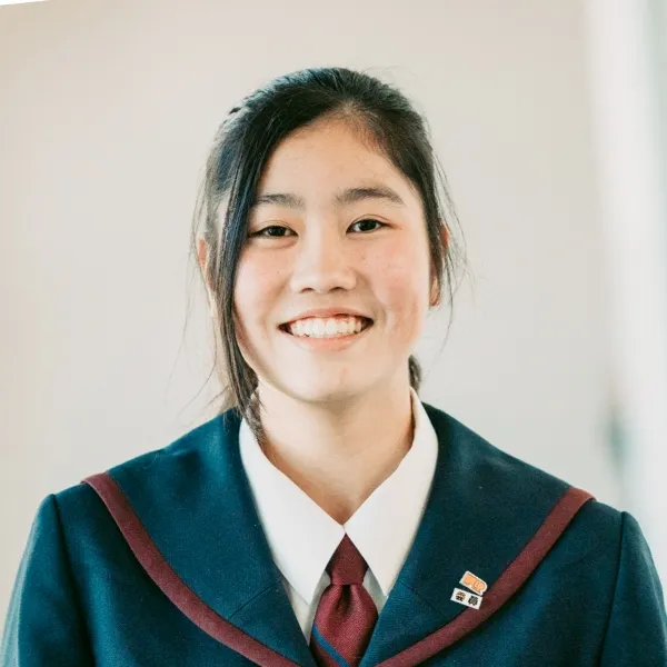 「バスケットボールをやってみたくて、入部しました。すごく疲れるけど、その分とても楽しいです。ゲーム中にシュートが入ったり、パスやアシストがうまくつながる時が嬉しいです。コート上では、先生ではなく自分たちが中心にならなければいけません。『リバウンド!』など声出しを意識し、チームワークを大切にして取り組んでいます。今、女子の人数が少ないので次はたくさん入部してほしいです。皆さん、お待ちしてます!笑」